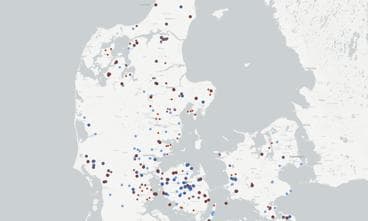 Kortet viser, hvor vandselskaberne har fundet DMS direkte i sit afgangsvand til forbrugerne eller i deres indvindingsboringer. Kilde: Kommunen.dk's kortlægning af vandselskaberne.