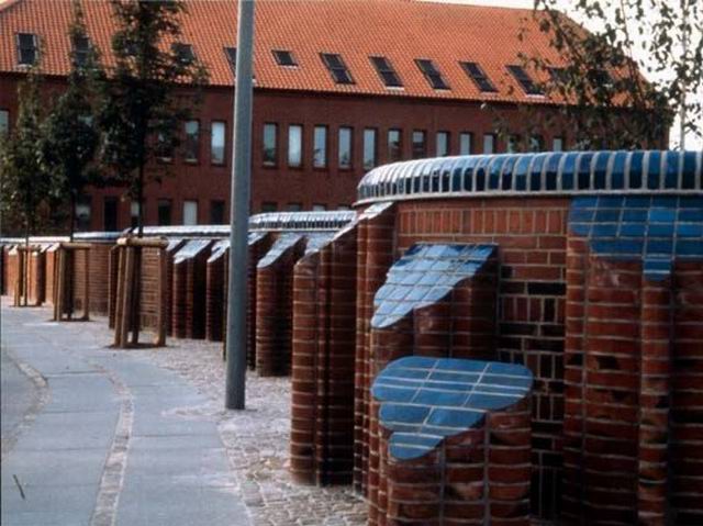 To frivillige fra den lokale kunstforening holder et hvidt banner ud mod den trafikerede vej. “BEVAR MUREN”, står der spraymalet med blå bogstaver. Et par andre frivillige sidder i en indbygget alkove i muren og sipper medbragt kaffe og vin. De har brugt eftermiddagen på at vaske og slibe den 45 meter lange murstensmur for at protestere. Kommunen vil nemlig rive den ned.