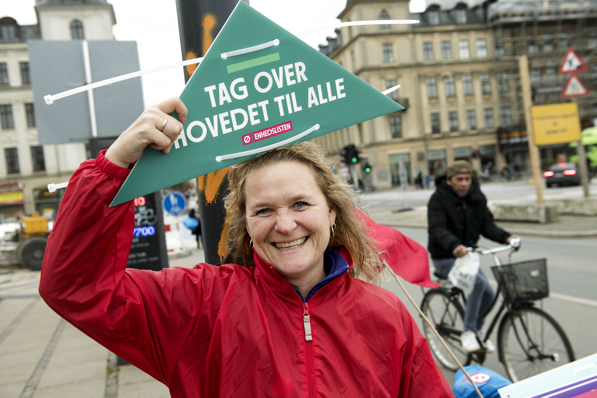 Også Enhedslisten har spillet på “Gøgeunge-effekten”, som Berlingskes Torben Weirup har døbt fænomenet. Med en trekantet plakat gav de ved seneste kommunalvalg kandidaterne tag over hovedet som kommentar til boligmanglen i København.