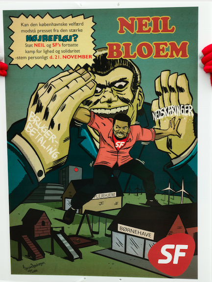 FANTASY-EFFEKTEN: Valgplakaterne havde deres gyldne periode mellem 1925 og 1960. Det var gerne flotte grafiske plakater med et budskab, fortæller professor ved KU Peter Nedergaard i sin bog, ”Valget er dit! – den danske valgplakat i 100 år”. I dag begrænser de fleste sig til et venligt portræt, kandidatnavn, partilogo og, hvis bølgerne går højt, et kort slogan. Der er langt mellem de sjove, gennemarbejdede, historiefortællende plakater, men ved seneste kommunalvalg havde københavnske Neil Bloem fra SF fået fremstillet sig selv som muskelsvulmende superhelt i kampen imod onde kapitalister og uretfærdighed. Han blev dog ikke valgt.