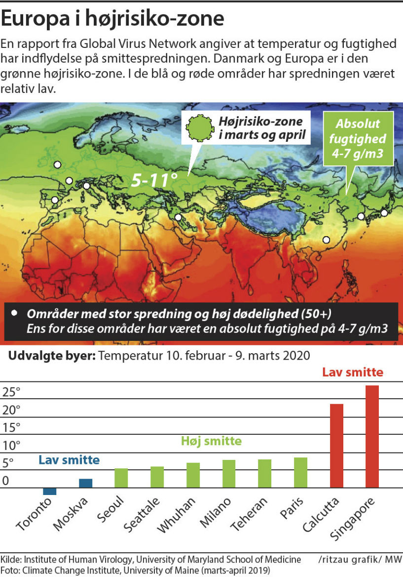 Men i varme regioner i lande som Spanien og Italien er vejret tilsyneladende ikke en redning. Her spreder virusset sig hastigt, og særligt Italien er hårdt ramt med flere tusinde døde.